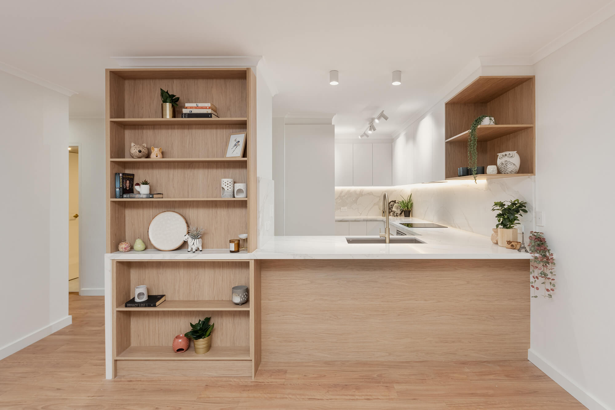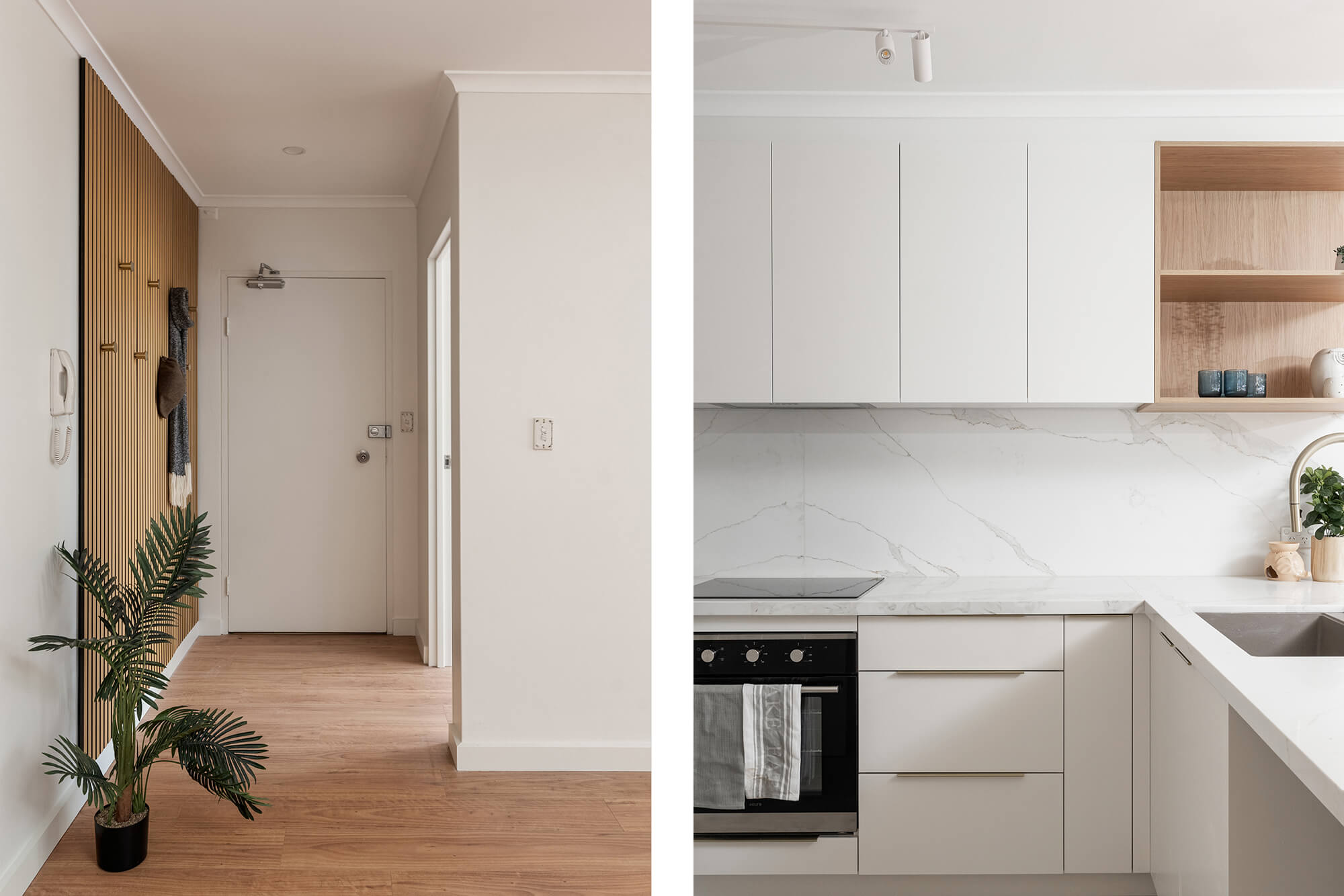 This project transformed a dated three-bedroom apartment into a sleek, modern living space. The focus was on achieving the aesthetic the clients were looking for and improving functionality with custom storage solutions.